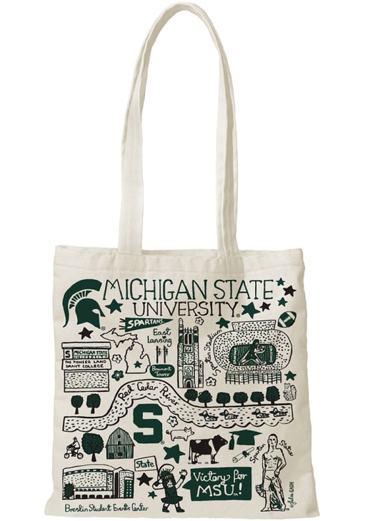 Michigan State Spartans Julia Gash Natural Canvas Slim Tote Bag - White