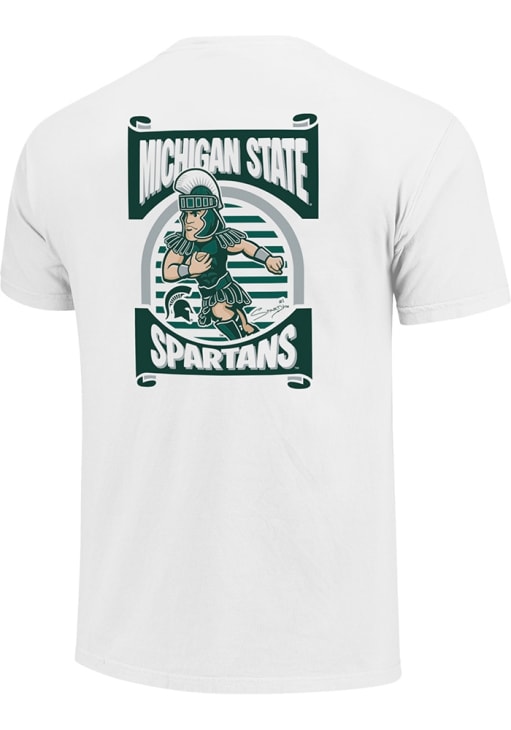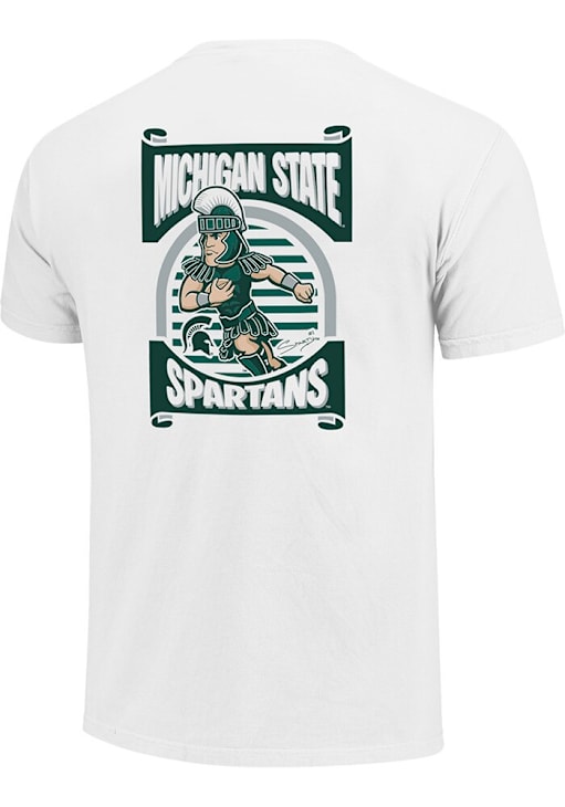 Display your team spirit with this remarkable Michigan State Spartans White Mascot Short Sleeve T Shirt! The MSU Short Sleeve Tee showcases a Screen Printed Design that truly sets it apart. Stand out from the crowd and proudly declare your allegiance to the Spartans with this exceptional White MSU T Shirt. Go Spartans!