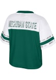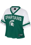 This remarkable Michigan State Spartans Womens Posh Fashion Football Jersey, showcasing a foil screenprint team neam and number on center chest with team name on back and stripes on sleeves. Elevate your admiration for Michigan State Spartans as you embrace this exceptional piece, designed to impress.