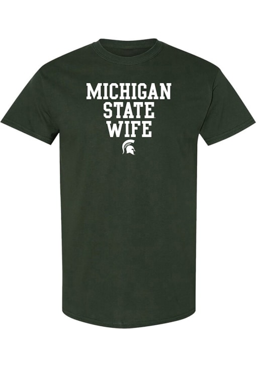 Display your team spirit with this remarkable Michigan State Spartans Green Basic Block Wife Short Sleeve T-Shirt! The MSU Short Sleeve Tee showcases a screen print team graphic across chest that truly sets it apart. Stand out from the crowd and proudly declare your allegiance to the Spartans with this exceptional Green MSU T-Shirt. Go Spartans!