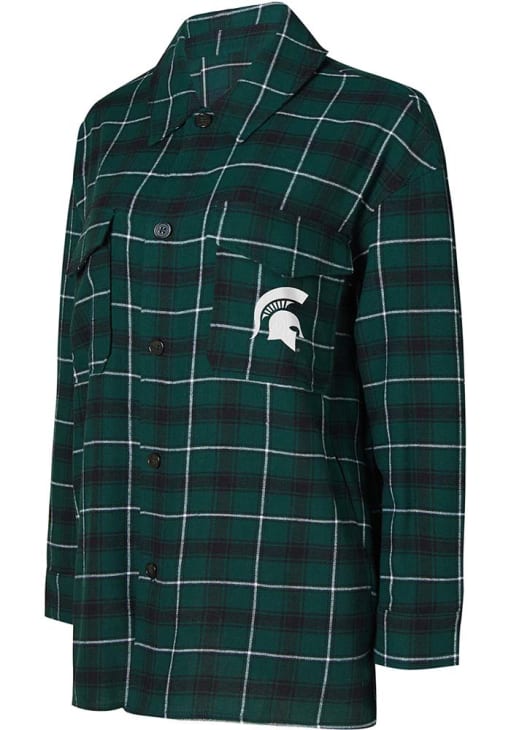 All Spartans fans will feel comfortable in this Michigan State Spartans Green Womens Sleep Shirt. This MSU Boyfriend Lounge Shirt is great for sleepovers or lounging around the house. This Sleep Shirt feature a embroidered team logo on front left pocket.