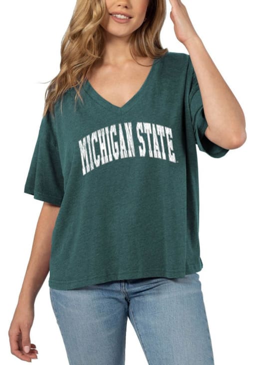 Display your team spirit with this remarkable Michigan State Spartans Green Burnout Jersey Short Sleeve T-Shirt! The MSU Short Sleeve Tee showcases a screen print team name and logo that truly sets it apart. Stand out from the crowd and proudly declare your allegiance to the Spartans with this exceptional Green MSU T-Shirt. Go Spartans!