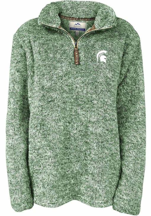 Embrace the warmth and showcase your Spartans pride with our Michigan State Spartans Long Sleeve Qtr Zip. This Womens Green Flecked Double Plush Long Sleeve Pullover offers a embroidered team logo on left chest for the perfect combination of comfort and style. Elevate your everyday look with this must-have Michigan State Spartans Long Sleeve Qtr Zip.