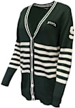 Gear up for the ultimate game day experience with the incredible Michigan State Spartans Womens Green Sassafras Cardigan! This Spartans Long Sleeve Top features a chenille team name on left chest with team logo on center back. Stay cozy and comfortable throughout the game with this high-quality Womens MSU Spartans Cardigan.