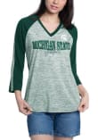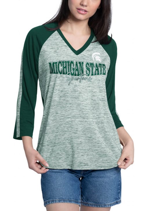 Show your Michigan State Spartans spirit in this MSU Green T-Shirt! This MSU Speed Training Long Sleeve T-Shirt makes a great layer for cooler nights cheering on the Spartans. Featuring a screen print with glitter and tonal rhinestone team name and logo on center chest, this Michigan State Spartans Long Sleeve LS Tee is an essential addition for every fan. Go Spartans!