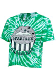 Display your team spirit with this remarkable Michigan State Spartans Green Tie Dye Mouth Crop Short Sleeve T-Shirt! The MSU Short Sleeve Tee showcases a screen print band inspired mouth graphic with team name on center chest that truly sets it apart. Stand out from the crowd and proudly declare your allegiance to the Spartans with this exceptional Green MSU T-Shirt. Go Spartans!