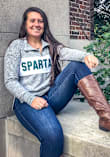 Embrace the warmth and showcase your Spartans pride with our Michigan State Spartans Long Sleeve Qtr Zip. This Womens Grey Cozy Fleece Style Long Sleeve Pullover offers a screen print team graphic on center chest stripe for the perfect combination of comfort and style. Elevate your everyday look with this must-have Michigan State Spartans Long Sleeve Qtr Zip.