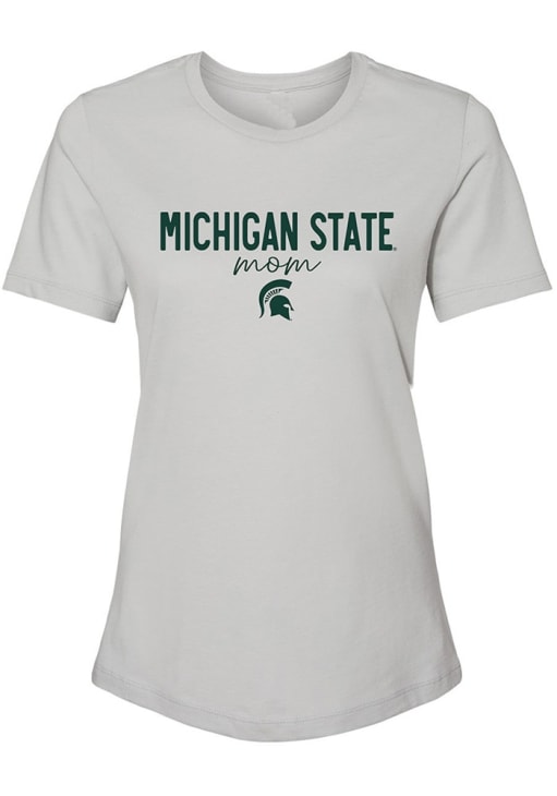 Display your team spirit with this remarkable Michigan State Spartans Grey Script Mom Short Sleeve T-Shirt! The MSU Short Sleeve Tee showcases a screen print team and and "mom" on center chest that truly sets it apart. Stand out from the crowd and proudly declare your allegiance to the Spartans with this exceptional Grey MSU T-Shirt. Go Spartans!