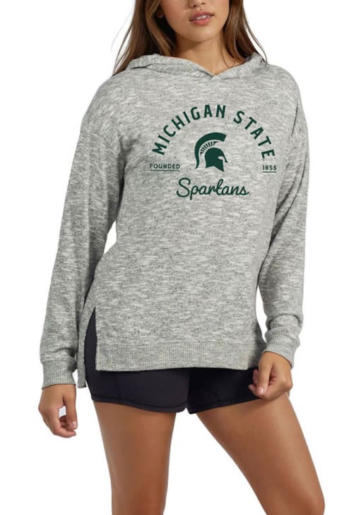 Embrace your Spartans pride and showcase your team spirit with confidence in this Michigan State Spartans Long Sleeve Hoodie! Stay warm and stylish with the MSU Womens Grey Snuggle Up Hooded Sweatshirt. Designed with screenprint team name and team logo on center chest, this Spartans Long Sleeve Hoodie is a must-have for dedicated fans.