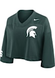 This remarkable Michigan State Spartans Womens Crop Fashion Football Jersey, showcasing a screen print team log on left chest and team name and number on center back. Elevate your admiration for Michigan State Spartans as you embrace this exceptional piece, designed to impress.