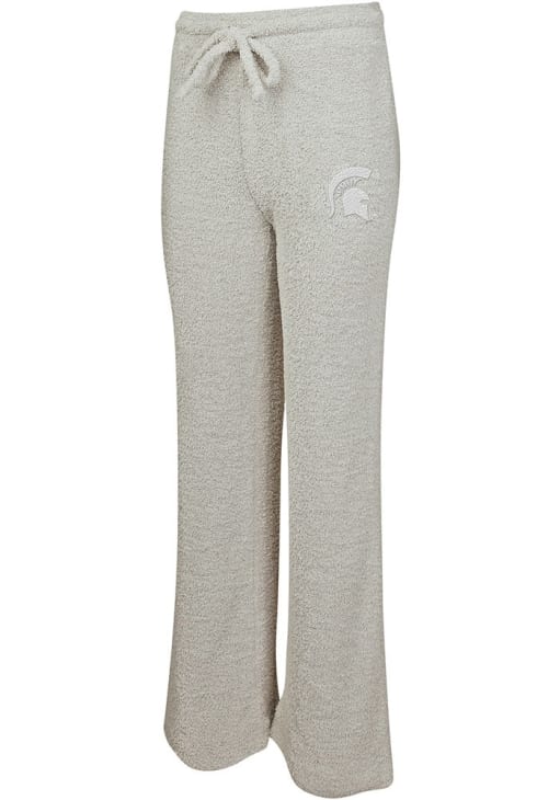 Cozy up in these Michigan State Spartans Womens Grey Ventura Sweatpants! Whether you're lounging at home or cheering at the game, these MSU Spartans Sweats are a great way to show your Spartans support in comfort. These Michigan State Spartans Sweatpants feature a embroidered team logo on left hip.