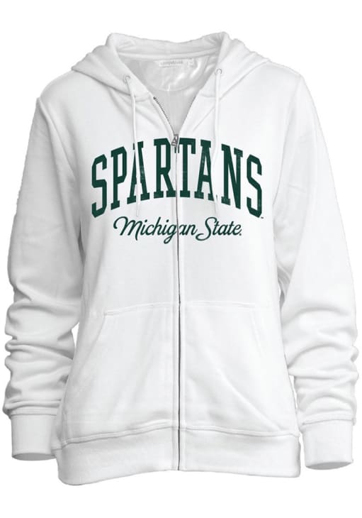 Make a bold statement with your MSU pride with this Michigan State Spartans Full Zip Jacket. Show your team spirit in style in this Womens White Full Zip Long Sleeve Full Zip. Make a statement in this Michigan State Spartans Womens Long Sleeve Full Zip Jacket, which features a screen print team name on full chest.
