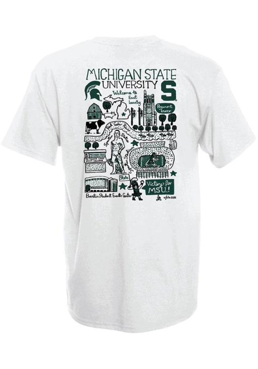 Display your team spirit with this remarkable Michigan State Spartans White Julia Gash Short Sleeve T-Shirt! The MSU Short Sleeve Tee showcases a screen print team logo on left chest with screen print Julia Gash team illustration on center back that truly sets it apart. Stand out from the crowd and proudly declare your allegiance to the Spartans with this exceptional White MSU T-Shirt. Go Spartans!