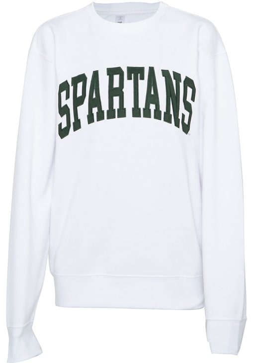 Gear up for the ultimate game day experience with this remarkable Michigan State SpartansWomens White Sport Crew Sweatshirt! Designed with the true fan in mind, this Spartans Long Sleeve Sweatshirt features a applique team name on center chest. Stay warm and comfortable with this Womens MSU Spartans Crew Sweatshirt.