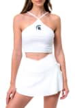 Elevate your tailgating style with this Michigan State Spartans Womens Tank Top. Stay fashionable and comfortable in the refreshing White Touchdown Cropped Sleeveless Shirt. Discover the enticing details of this MSU Tank Top, showcasing a embroidered team logo on center chest that's sure to impress.