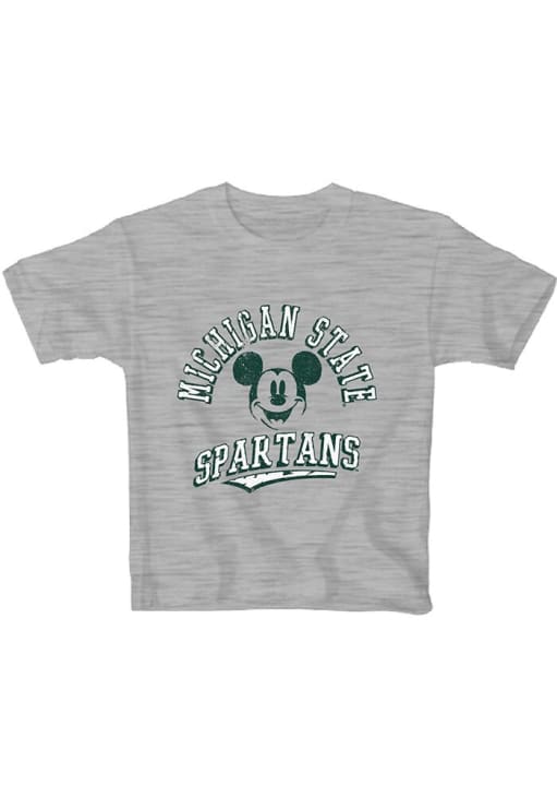 Product Details Product Details Screen printed graphic on center chestCover seam stitched on collarRelaxed fitDouble needle stitched sleeves and bottom hemShort sleeveCrew neckPerfect for young fans!100% Cotton Officially Licensed Your future Michigan State Spartans will be gameday ready in this Youth Short Sleeve Tee. This Mickey T-Shirt features a screen print team graphic.