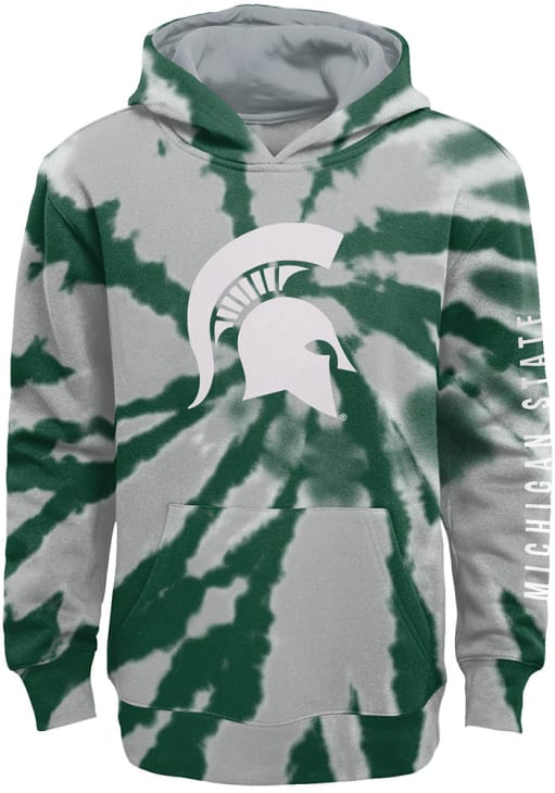 Go to gamedays in style in this Youth Green Michigan State Spartans Outer Stuff Statement Tie Dye Hooded Sweatshirt! This Spartans Hoodie features a screen print team graphic that will be sure to keep you warm and cozy.