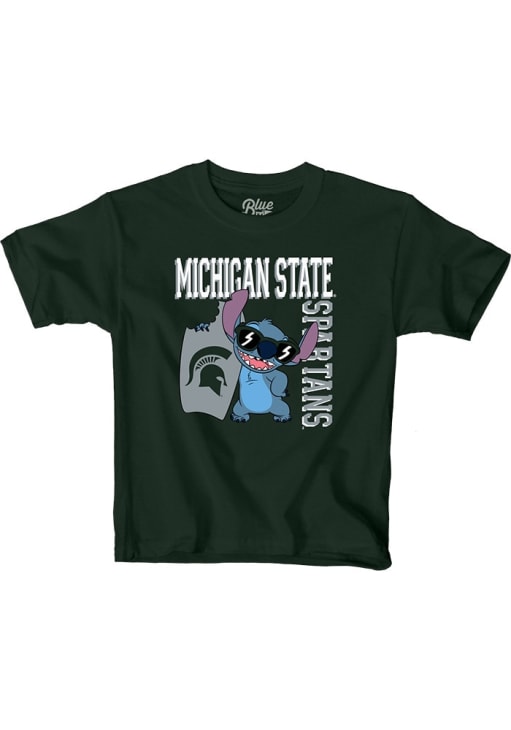 Product Details Product Details Screen printed graphic on center chestCover seam stitched on collarRelaxed fitDouble needle stitched sleeves and bottom hemShort sleeveCrew neckPerfect for young fans!100% Cotton Officially Licensed Your future Michigan State Spartans will be gameday ready in this Youth Short Sleeve Tee. This Stitch T-Shirt features a screen print team graphic.