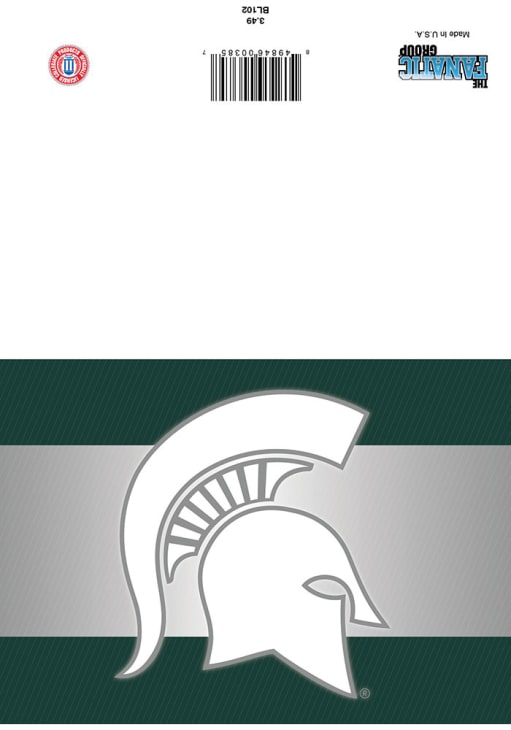 Product Details Product Details Unique birthday cardFeatures team logo and colorsQuality materialPerfect addition to any giftBlank side for writingPaper Officially Licensed This Michigan State Spartans Card is a great way to deliver your message to your favorite Spartans fan. This Card features a team color and logo and will be that perfect touch to any gift. Go Spartans!