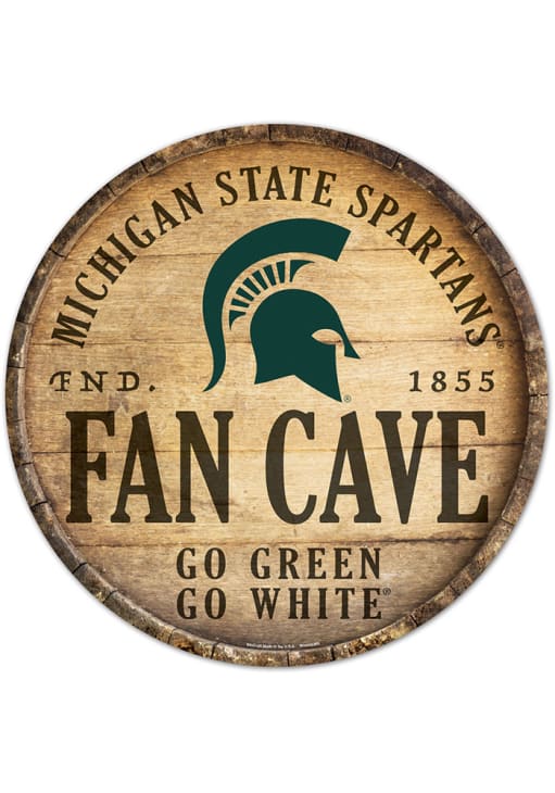 This Michigan State Spartans round fan cave Sign is great for decorating your home Spartans team spirit. Take your team spirit to the next level with this Sign, which features a an oversized team logo in the center with team wordmark above on a round distressed wood sign. Go Spartans!