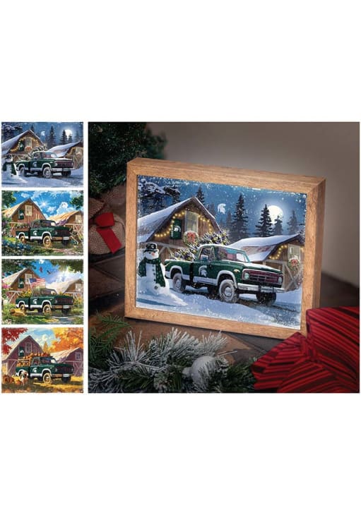 Product Details Product Details 1 - 10" x 8" wood frame box4 art images: Winter, Spring, Summer, Fall3 LED color optionsWood frame- 2” deepSwitch control with 4 buttonsUSA Officially Licensed Michigan State Spartans team logo Table Lamp is a great way to shed some light in your Spartans fan cave. This Table Lamp features a team logo.