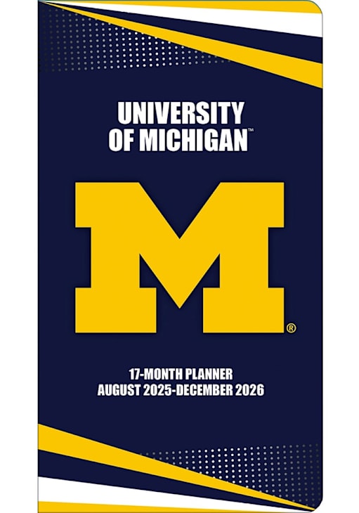 Product Details Product Details 17-month format, August 2025 - December 2026Plastic-free designDurable protective sleevePlanner size: 3.5"w x 6.25"h x 0.2"dSleeve size: 3.875"w x 6.375"h x 0.21"d Officially Licensed Every Wolverines fan needs this Michigan Wolverines 17 Month Pocket Planner Calendar on the wall of your office to show it off year-round. This Calendar features a durable protective sleeve.
