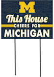 Michigan Wolverines 18x24 This House Cheers Yard Sign will let everyone know you root for the Wolverines proudly. This Yard Sign features a UV weather-resistant ink which won't fade over time.