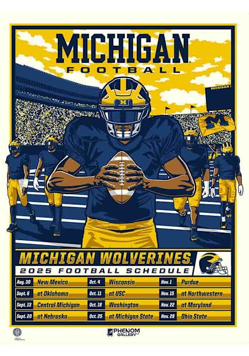 Navy Blue Michigan Wolverines 2025 Football Schedule Unframed Poster