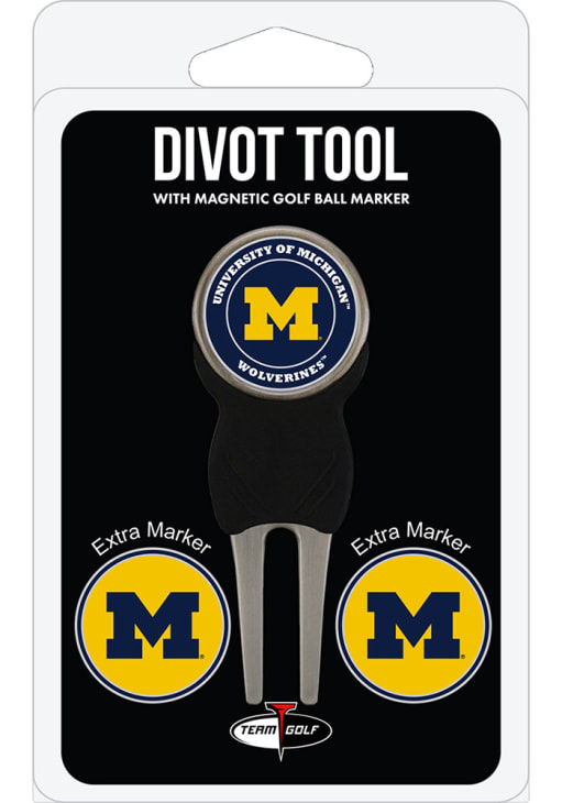 Product Details Product Details Retractable toolLightweightDouble sided ball markersMagnetic markerMETAL Officially Licensed Michigan Wolverines 3Pk Ball Marker Divot Tool is a great way to show your Wolverines pride on the golf course. This Divot Tool features a team logo on team color background. Go Michigan!
