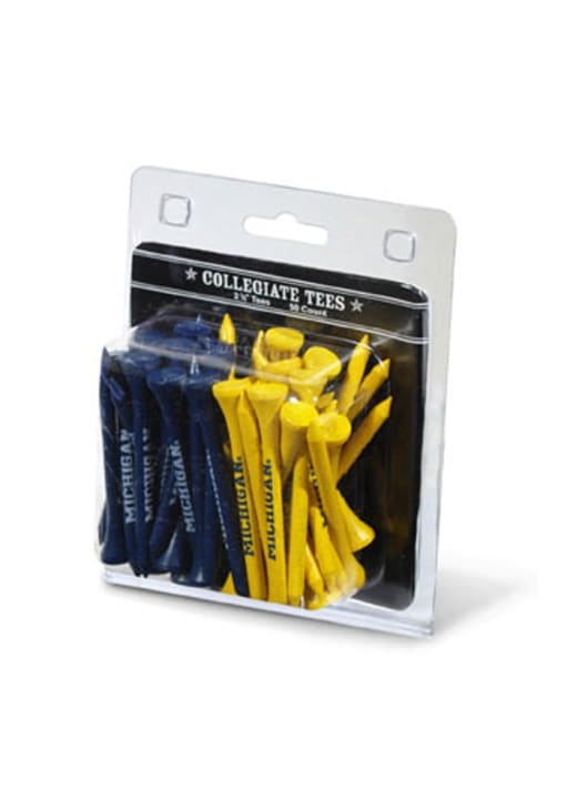 Product Details Product Details 50 pack of wooden teesPack contains the team's two main colorsTeam script printed in one color on each teeTees measure 2 3/4"Show your team spirit on the green!WoodImported Officially Licensed Michigan Wolverines 50 Pack Golf Tees is a great way to Tee up and show your Wolverines pride on the golf course. These Golf Tees features a 50 pack of navy and maize tees with team wordmarks. Go Michigan!