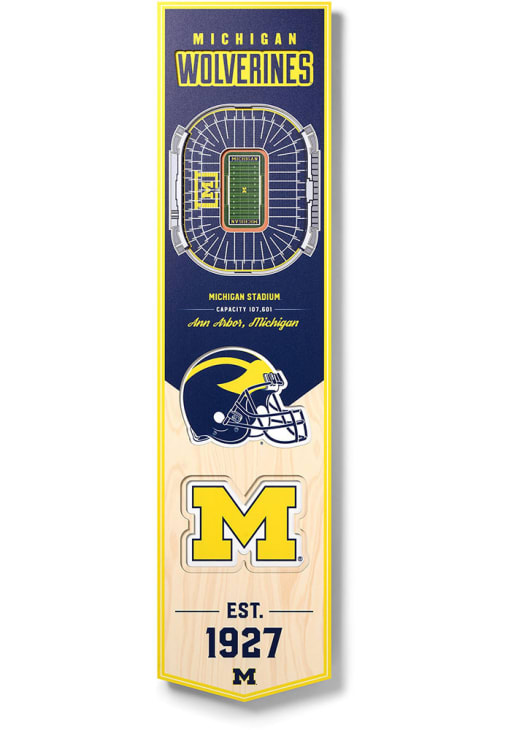 This Michigan Wolverines 8x32 inch 3D Stadium Sign is great for decorating your home Wolverines team spirit. Take your team spirit to the next level with this Sign, which features a multiple layers to create a 3D replica of your team's actual stadium in the team's official logo and colors. Go Michigan!