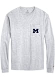 Show your Michigan Wolverines spirit in this Michigan Ash T Shirt! This Michigan All American Football Front Back Long Sleeve T Shirt makes a great layer for cooler nights cheering on the Wolverines. Featuring a screen print team graphic on front chest, this Michigan Wolverines Long Sleeve Tee is an essential addition for every fan. Go Michigan!