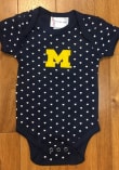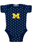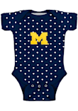 Your little Wolverines fan will look adorable in this Baby Blue Michigan Wolverines Heart One Piece! This Michigan Wolverines Romper features a heart print all over and team logo center.