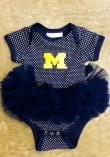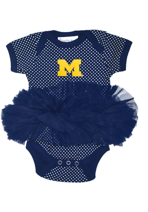 Your little Wolverines fan will look adorable in this Baby Blue Michigan Wolverines Pin Dot Tutu One Piece! This Michigan Wolverines Romper features a polka dot print all over with team logo on the center and tutu skirt attached.