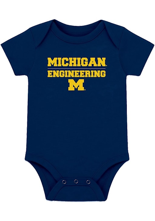 Your little Wolverines fan will look adorable in this Baby Navy Blue Michigan Wolverines School of Engineering One Piece! This Michigan Wolverines Romper features a screen print team graphic.