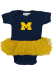 Your little Wolverines fan will look adorable in this Baby Navy Blue Michigan Wolverines Two Tone Tutu One Piece! This Michigan Wolverines Romper features a team embroidered graphic and tutu skirt attached.