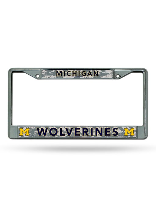 Silver Michigan Wolverines Camo Decal Chrome License Plate Frame