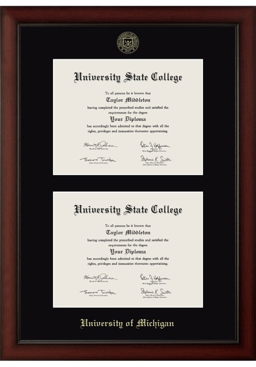 Michigan Wolverines Double Document Paxton Diploma Frame is a great way to keep your Wolverines memories close. You'll love looking at your favorite Wolverines moments with this Diploma Frame, which features a Showcase for your university diploma frame. Go Michigan!