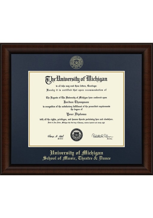 Michigan Wolverines Embossed Lenox School of Music, Theatre & Dance Diploma Frame is a great way to keep your Wolverines memories close. You'll love looking at your favorite Wolverines moments with this Diploma Frame, which features a Showcase for your university diploma frame. Go Michigan!
