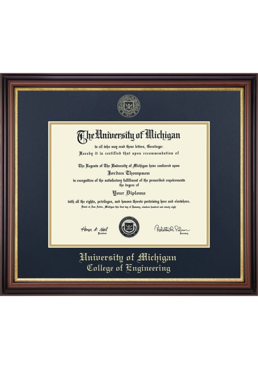 Michigan Wolverines Embossed Regency Gold Michigan Engineering Diploma Frame is a great way to keep your Wolverines memories close. You'll love looking at your favorite Wolverines moments with this Diploma Frame, which features a Showcase for your university diploma frame. Go Michigan!