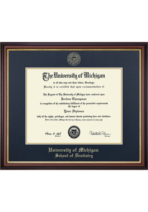 Michigan Wolverines Embossed Regency Gold School of Dentistry Diploma Frame is a great way to keep your Wolverines memories close. You'll love looking at your favorite Wolverines moments with this Diploma Frame, which features a Showcase for your university diploma frame. Go Michigan!