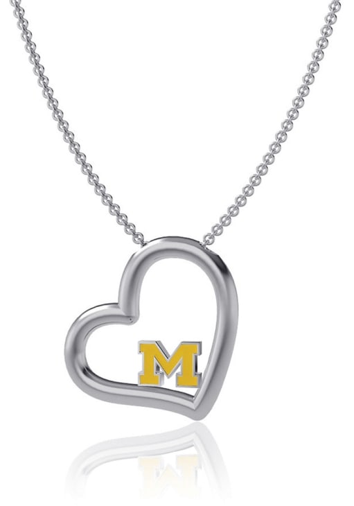 Product Details Product Details Solid sterling silver with EnamelSilver 18 inch rope chainSize: 7 x 10 mmPlatinum platedPerfect for game day!.925 Solid Sterling SilverSurface washableImported Officially Licensed Make every outfit better with a touch of Wolverines pride by getting this Michigan Wolverines Enamel Heart Womens Necklace from Rally House! You'll love wearing your Necklace, as it features a team logo on sterling silver jewelry.