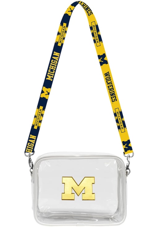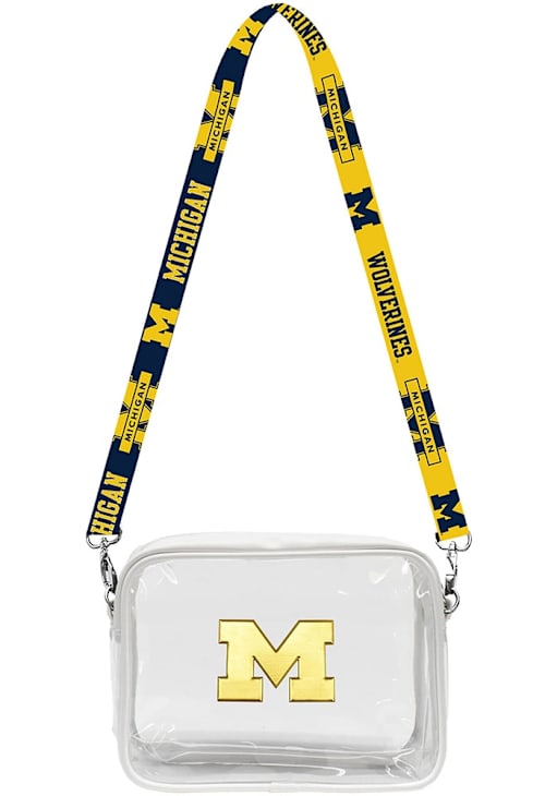 Product Details Product Details Complies with stadium policiesZipper closureCan be worn crossbody or over the shoulderL 5.5" x W 2.2" X H 7.5"Adjustable strap Officially Licensed Whether it's gameday or another occasion in the offseason, count on this Michigan Wolverines Fanny Fan Clear Tote from Rally House for your on-the-go needs! You'll love this Clear Tote that features a clear bag with team logo and team colors.