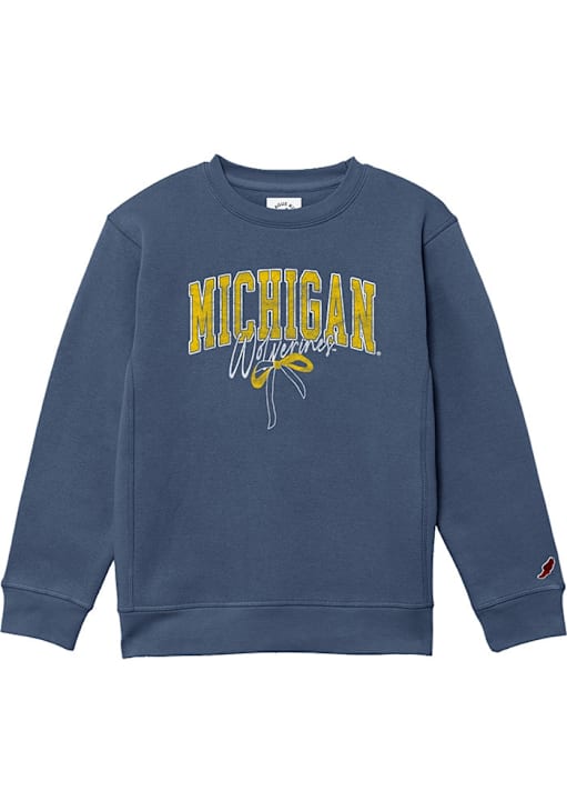 Your little one will look great at school in the Girls Blue Michigan Wolverines Team Script Crew Sweatshirt! The Wolverines Long Sleeve Crew Sweatshirt features a screen printed team graphic. It will be sure to keep future Wolverines fans cozy and warm as they head to school or to watch their favorite team play!
