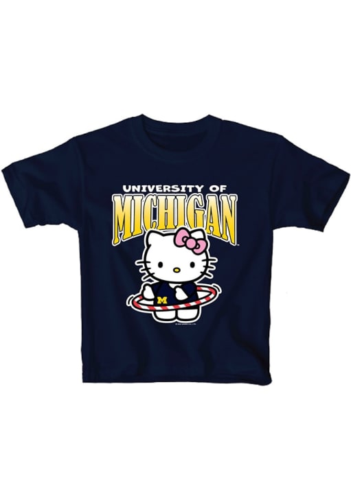 Support your favorite team in this Girls Navy Blue Michigan Wolverines Hello Kitty Team Wordmark Short Sleeve T-Shirt! This T-Shirt features a screen print team graphic, so everyone will know your favorite team is the Michigan! This is the perfect Michigan Wolverines Girls T-Shirt for wearing to game day or everyday. Go Michigan!