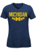 Show your support for Wolverines in this Girls Blue Michigan Wolverines Short Sleeve Fashion Tee! This Winning Fashion T-Shirt features a screen print team graphic on center chest on a v-neck tee that pairs perfect with any wardrobe. Get ready to show pride for your favorite team as you cheer "Go Michigan"