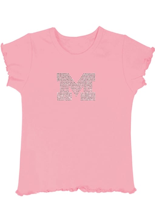 Show your support for Wolverines in this Girls Pink Michigan Wolverines Short Sleeve Fashion Tee! This Lettuce Edge Fashion T-Shirt features a clear stone embellishment that pairs perfect with any wardrobe. Get ready to show pride for your favorite team as you cheer "Go Michigan"