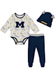 Get your little Michigan Wolverines fan gameday ready with this Blue Infant Top and Bottom Set! This Top and Bottom Set features a screen print team graphic on creeper and hat and is ready to be sported by a little fan.
