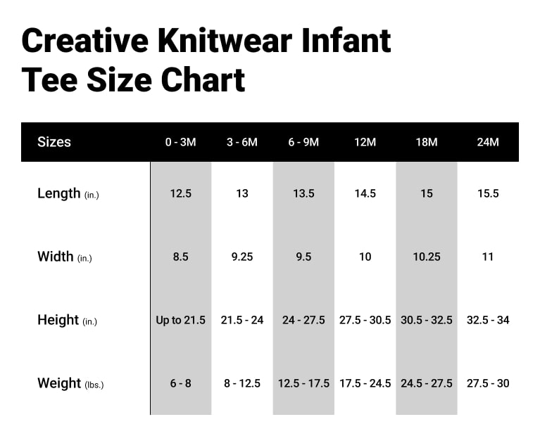 Size Chart for Infant Blue Michigan Wolverines Primary Logo Short Sleeve T-Shirt
