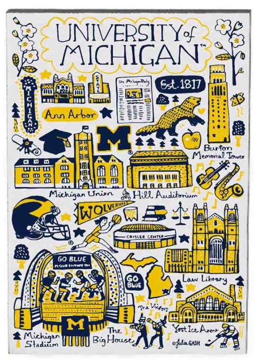 Showcase your Michigan Wolverines spirit on your fridge at work or at home with this Michigan Wolverines Julia Gash Magnet. This Magnet features a team colors and logo with Julia Gash design.